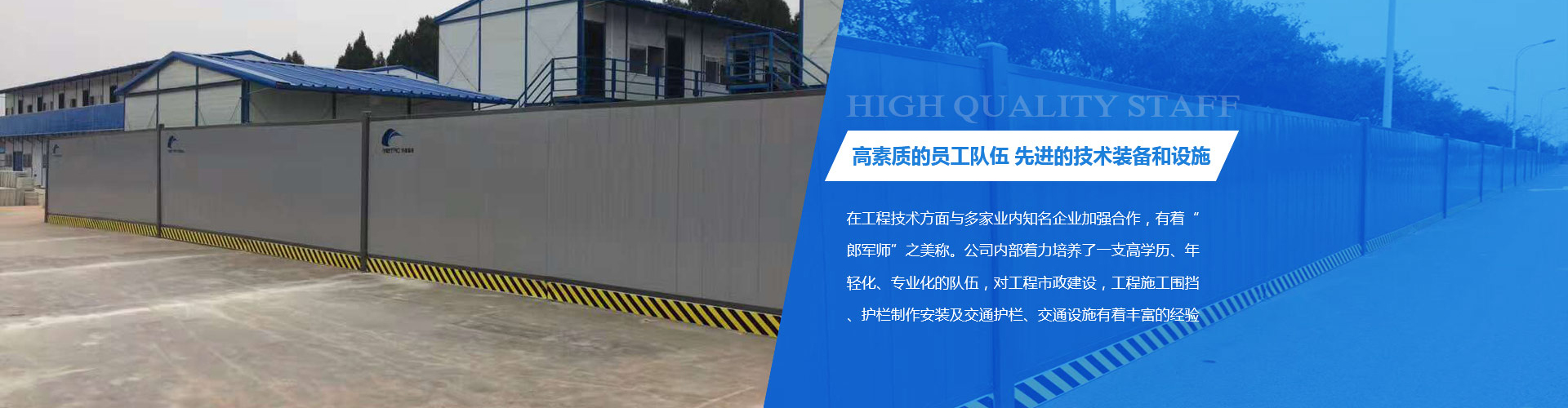 Z6尊龙凯时建设于2008年,,,是一家大型市政工程公司。。。。。。本公司专业从事地铁围挡、市政施工围挡、新型景观围挡、 企口型彩钢围挡、PVC工程围挡、PVC围墙护栏、 性工程围挡、运动板房、锌钢系列栅栏、交通设施的生产和销售。。。。。。 自建设以来,,,公司始终恪守“全心组织、规范施工、效劳至上”的质量目的,,,在工程技术方面与多家业内 企业增强相助,,,有着“郎智囊”之美称。。。。。。公司内部着力作育了一支高学历、年轻化、专业化的步队,,,对工程市政建设,,,工程施工围挡、护栏制作装置及交通护栏、交通设施有着富厚的履历,,,并能肩负种种园林绿化围栏及新型护栏的设计制作装置类型修建智能化等工程...